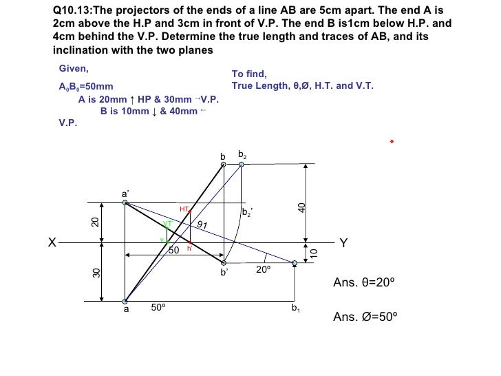 The Projectors Of The Ends Of A Line Ab Are 5cm Apart The End A Is 2cm Above The H P And 3cm In Front Of V P The End B Is1cm Below H P